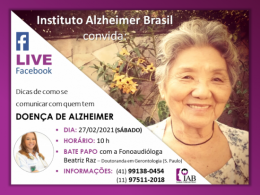 Esperamos você lá na página do Facebook do Instituto Alzheimer Brasil e contamos com sua ajuda em COMPARTILHAR este aviso pois assim, pessoas que estejam precisando poderão se beneficiar também dessa informação se souberem dela.
