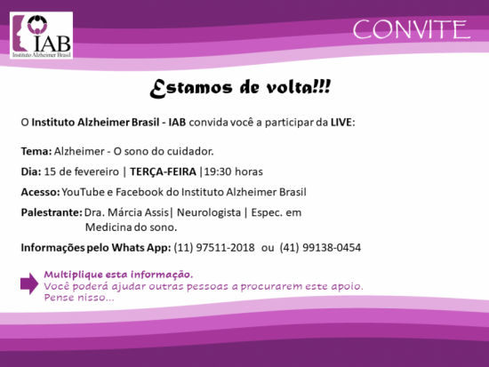 O Instituto Alzheimer Brasil - IAB convida você a participar da LIVE: