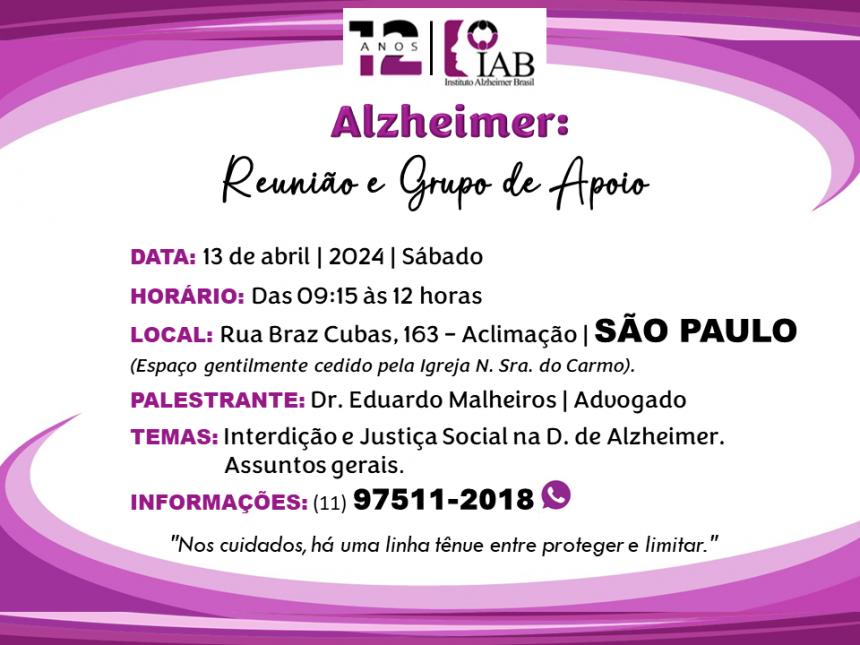 - 13 de ABRIL - Garantias legais para pessoas com demência.