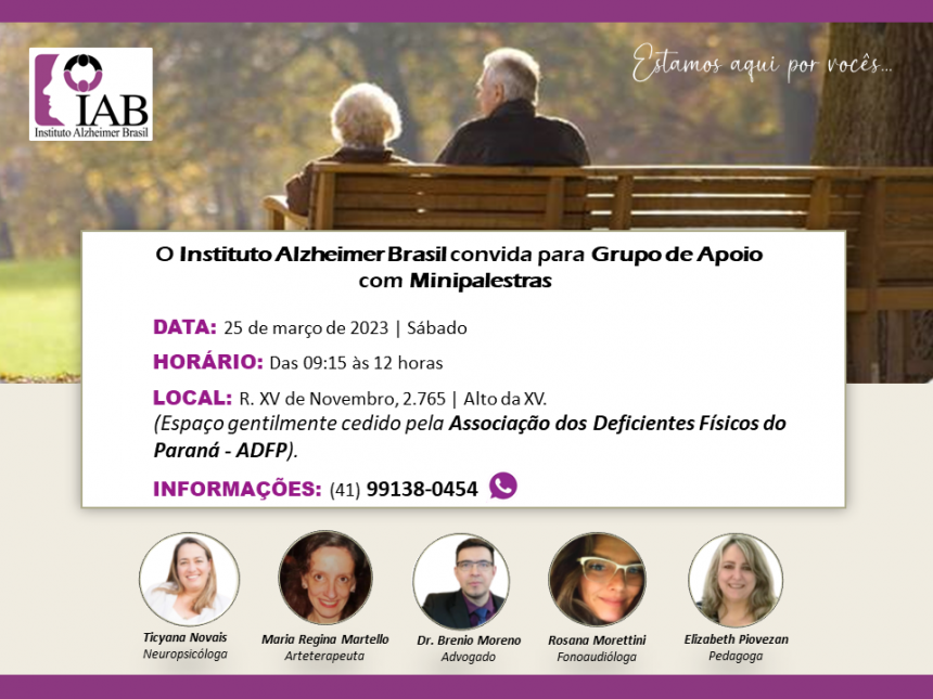 O Instituto Alzheimer Brasil convida para o Grupo de Apoio com Minipalestras em CURITIBA.
