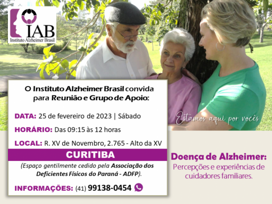 Participe da Reunião e Grupo de Apoio em Curitiba que o Instituto Alzheimer Brasil estará oportunizando para os familiares cuidadores de pessoas com Doença de Alzheimer e outras formas de demência.