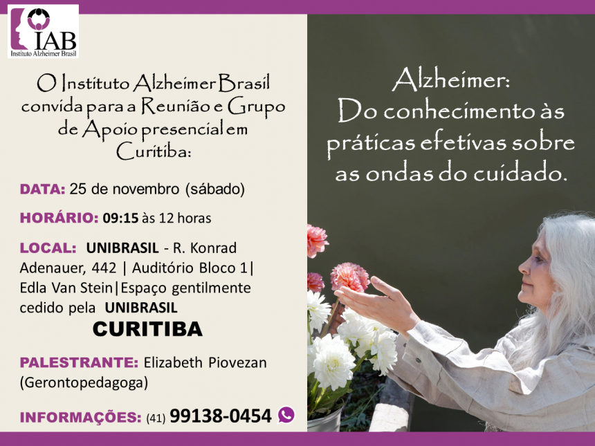 O Instituto Alzheimer Brasil convida para a Reunião e Grupo de Apoio presencial em Curitiba: