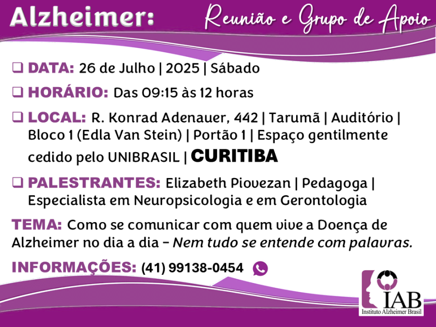 TEMA: Como se comunicar com quem vive a Doença de Alzheimer no dia a dia – Nem tudo se entende com palavras.