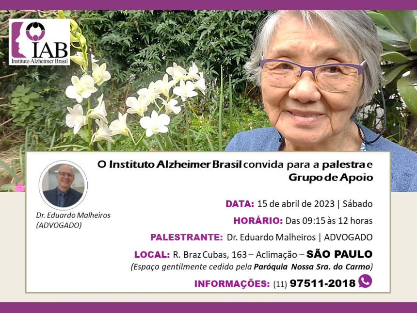 O Instituto Alzheimer Brasil convida para a palestra e Grupo de Apoio: