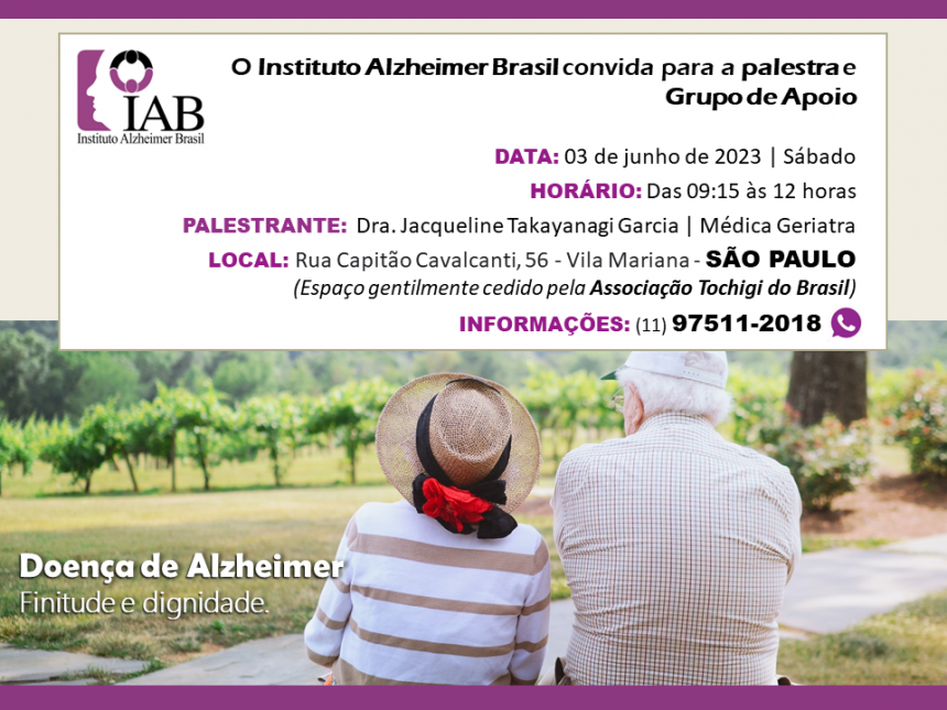 O Instituto Alzheimer Brasil convida para a palestra e Grupo de Apoio
