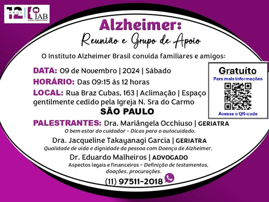 O Instituto Alzheimer Brasil convida familiares e amigos: