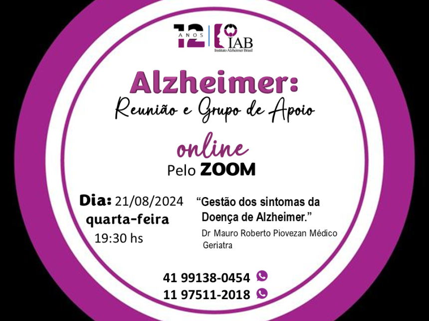 REUNIÃO E GRUPO DE APOIO SOBRE DOENÇA DE ALZHEIMER ONLINE: