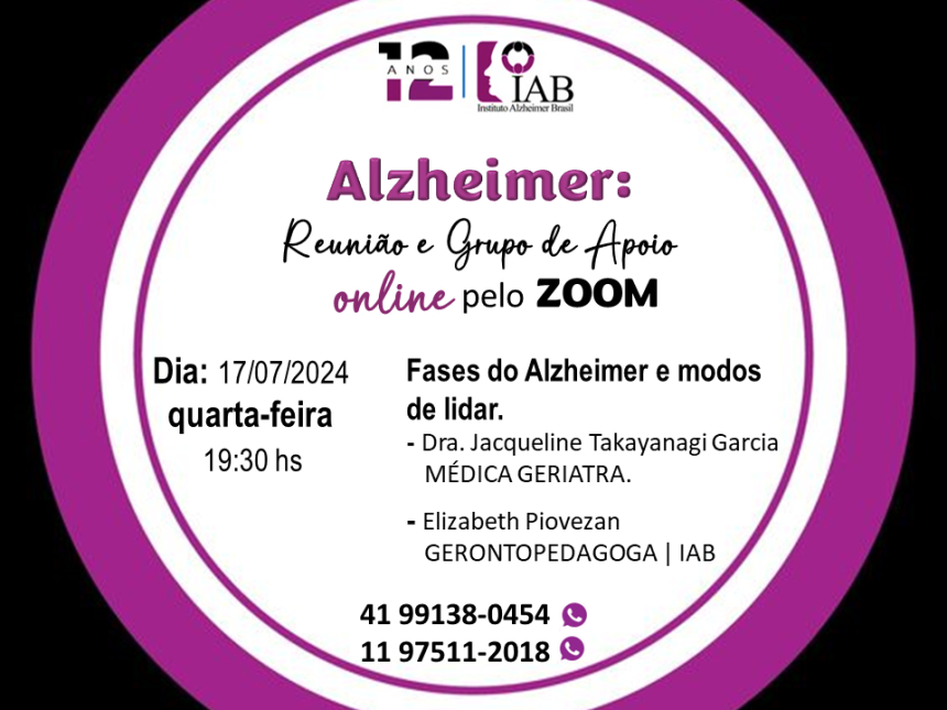 Instituto Alzheimer Brasil - Reunião e Grupo de Apoio online pelo aplicativo Zoom: