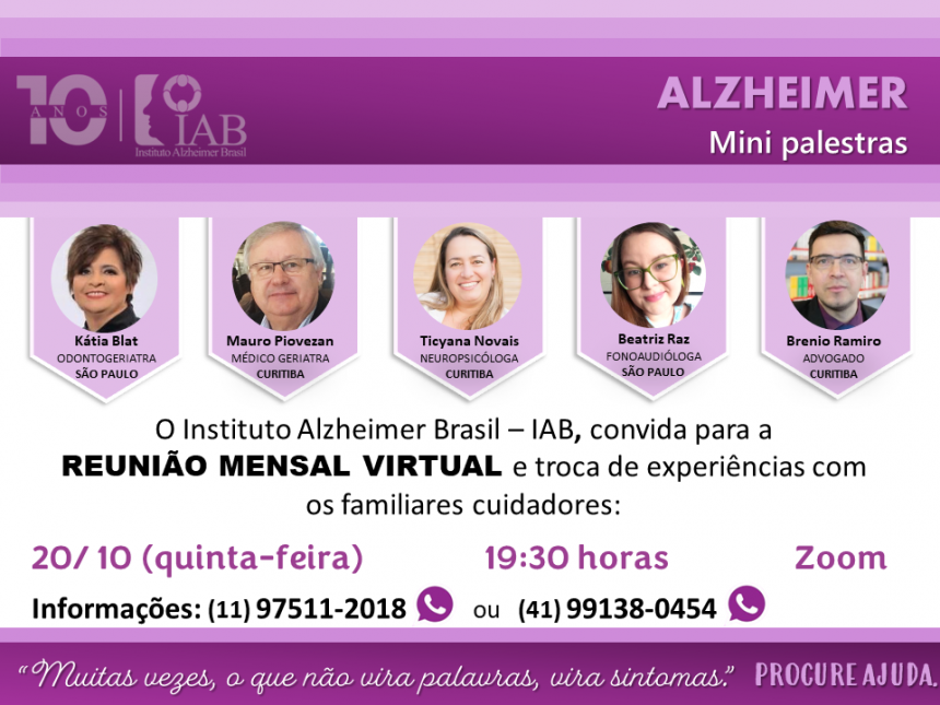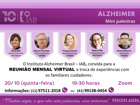 O Instituto Alzheimer Brasil – IAB, convida para a Reunião VIRTUAL e troca de experiências com
