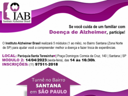 O Instituto Alzheimer Brasil realizará 5 módulos (1 ao mês), no Bairro Santana (Zona Norte