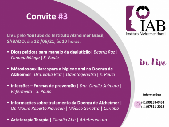 ACESSO: pelo YOUTUBE do Instituto Alzheimer Brasil