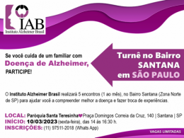com Doença de Alzheimer em São Paulo: Turnê sobre Alzheimer pelos Bairros de SP. Serão 5 encontros (1 encontro mensal) para oferecer informações